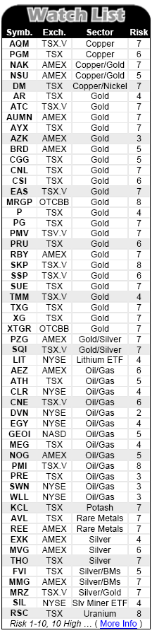 Watch List Philosophy In general, if we include a company on our Watch List it is because we believe it has excellent fundamental merit. Typically it is in a sector where its selling prices are likely to stay high or rise and it has excellent prospects for increasing its production. We also usually like its story and think it will grow more attractive to investors going forward. Often promising fundamentals will make one company a good investment and speculation, or a good company to buy for both long-term and short-term time horizons.