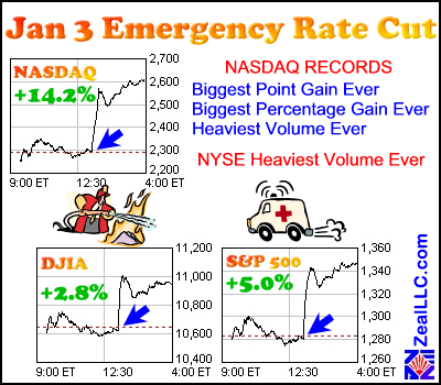 Alan Greenspan and his merry band of marauders made an unprecedented massive rate cut between normal Federal Reserve Open Market Committee meetings. The FOMC last met on December 19, where it flipped from an inflationary tightening bias to a recessionary loosening bias faster than a quickdraw gunslinger on speed.