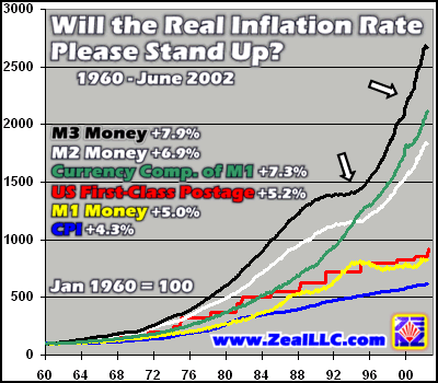 As M1, basically physical currency and checking account balances, is the very money that American consumers and corporations spend on postage, it is not surprising that the M1 fiat currency inflation rate of a 5% CAGR is far closer to the growth of postage rate hikes than the politically-motivated funny numbers of the CPI.