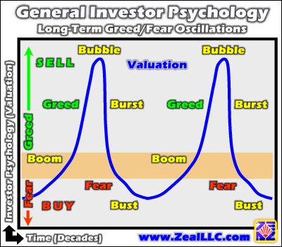 These mania times mark extreme systemic greed, when all anyone ever talks about is how rich they will become from the rocketing stock markets. Sound familiar? Eventually the bubble mysteriously starts fading and soon crashes, usually for no apparent news-driven reason. The bubble bursts and greed bleeds away fast and eventually general fear takes command which leads to a market bust.