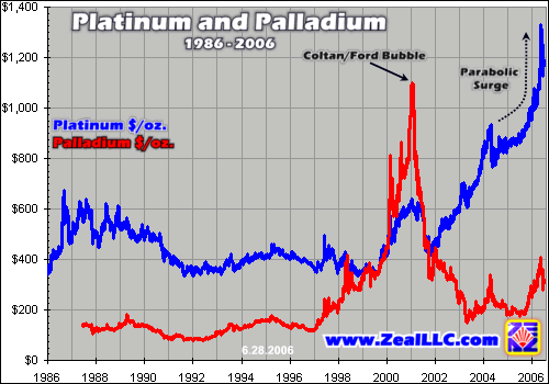 But the other factor was the little known Coltan Crisis. At the peak of the tech bubble, palladium was deemed the replacement for the then short-supplied tantalum, used in various electronics as well as cell phones. This crisis ended up being blown way out of proportion, but the two combined factors prompted speculators to emphatically bid up palladium prices leading to its sharp crash in 2001 that I believe this metal has still not yet fully recovered from.