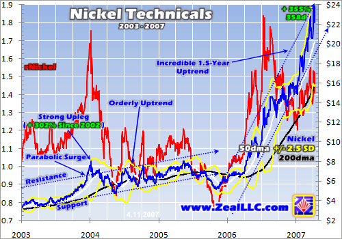 Some very-measurable fundamentals in the stockpiles of these metals have allowed the speculators to take hold of the base metals markets. But in what appeared to be pure speculative fervor that drove the swift ascents of the sharp 2006 uplegs, the resilient technicals since have continually defied this logic. Many folks are starting to take the fundamentals a little more seriously since the prices did not crash or even correct to levels where many thought they should go.