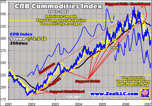 I hate falsehoods and it really irritates me when market commentators mislead investors due to insufficient research. If they are going to guess on the future and be wrong, fine, that is speculation. But to bring up a CRB chart, show a dire long-term support breakdown, but conveniently fail to mention that they are really looking at two radically different indexes, is unacceptable. To me it reeks of gross negligence or fraud.