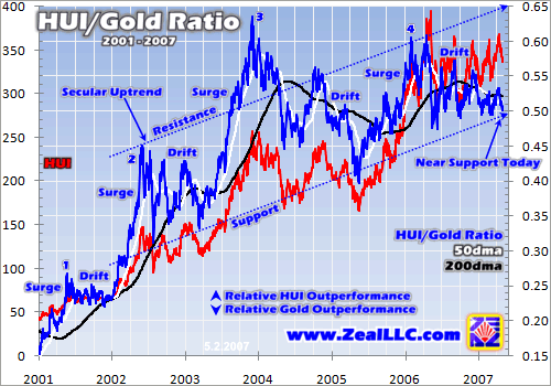 HUI/Gold Ratio Trends Adam Hamilton May 4, 2007 2817 Words