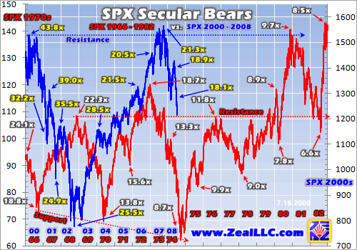 The implications of the Dow once again hitting 14x earnings today, for the first time since the late 1980s, are profound. Seeing fair value again validates the thesis that we are in a secular bear, where stocks at best trade sideways for 17 years! Since 17 years is such a huge chunk of any investor’s investing lifespan, it is absolutely devastating for wealth creation to be trapped unaware within one of these secular bears.