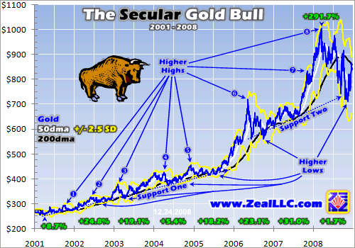 At Zeal we’ve been long physical gold since it traded in the $260s in May 2001. Our subscribers have already made fortunes in the 7 years since heeding our analysis and recommendations. So we are certainly not new to this gold party, we were buying gold and gold stocks back in the early 2000s when it was considered lunacy to do so. We are true contrarians who have been battle-tested, and prevailed, in this challenging financial decade.