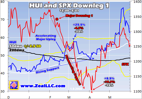 Yet despite this horrific general-stock selling, to the very day the SPX fell by nearly 1/3rd the HUI rose 24.0%! And if you take the best HUI performance within this downleg, the HUI was up 73.3% during a span of time when the SPX fell 11.1%. Once again the HUI clearly demonstrated that even during the worst of stock-market times it is not a slave to general-stock performance.