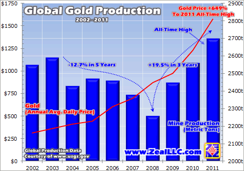 Though production had lagged early on as the miners fought to rebuild an infrastructure that had been woefully neglected, we are finally starting to see the fruits of 10+ years of labor via a banner 2011. And so long as higher gold prices and investors support the miners, they should be able to successfully supply what is expected to be continued demand growth.