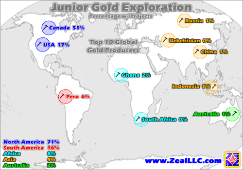 At Zeal we just published the second research report in our two-report series profiling our favorite junior-gold-exploration stocks. And though the two dozen stocks profiled in these reports operate a wide geographical array of projects, in aggregate the global breakdown is very similar to what we see in our junior-gold-exploration map. To have the detailed fundamental profiles of these high-potential stocks at your fingertips, buy your reports today! And to find out which ones we are recommending in our acclaimed weekly and monthly newsletters, subscribe today!