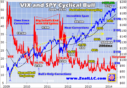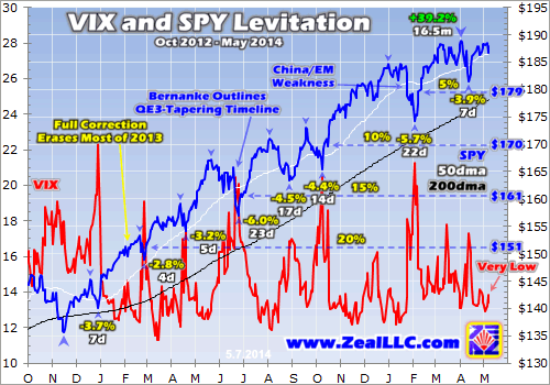 As the next chart reveals a little later, it has actually been a truly mind-boggling 30 months since the end of the last S&P 500 correction! It ended way back in early October 2011. Since then SPY has blasted 71.8% higher at best, with no check on increasingly rampant greedy sentiment. In a normal healthy bull market, we would’ve seen two or three correction-magnitude selloffs during that time to keep psychology in line.