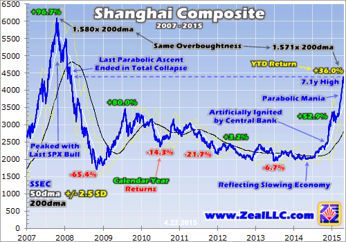 With all the world’s stock markets now extremely overextended and overvalued on central-bank-conjured euphoria, there’s a high chance the bursting of China’s stock-market bubble will suck in the rest of the world’s lofty stock markets as well. A major reversal in the fortunes of China’s red-hot stock markets is one of the leading potential catalysts to spark the long-overdue major selloff in the US stock markets.