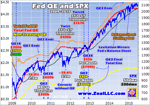 In the 6.3 years since the last cyclical bear bottomed in March 2009, the SPX has blasted an incredible 215.0% higher at best! This was an anomalously outsized and long-lived bull. The average size and duration of stock bulls at this stage in the great stock-market cycles is a mere doubling over just 2.9 years. Something goosed this bull to enormous proportions, and it was the Fed’s extraordinary levels of easy money.