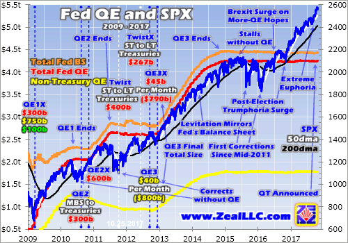 The US flagship S&P 500 broad-market stock index (SPX) has powered an incredible 280.6% higher over the past 8.6 years, making for the third-largest and second-longest bull market in US history! The resulting popular euphoria, a strong feeling of happiness and confidence, is extraordinary. So investors brazenly shrugged off the Fed’s September 20th QT and the ECB’s October 26th QE-tapering announcements.