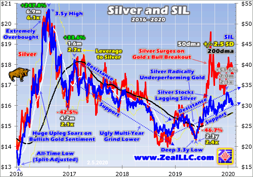 So far in Q1’20, gold has averaged $1561. If silver merely returned to that low SGR-gold-bull average at 78.8x, that implies silver at $19.81. That would be a new secular high exceeding late September’s peak levels. And with silver approaching the psychologically-heavy $20 level, there’s no doubt traders would flock back to silver stocks. SIL would explode higher, hitting major new highs in this extended upleg.