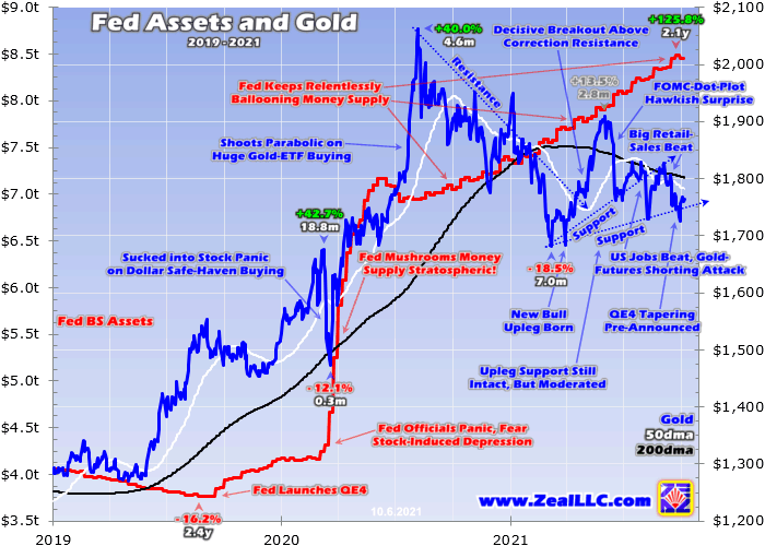 And this past year’s rapid monetary expansion is just the tip of the iceberg. This chart superimposes gold prices on the Fed’s weekly balance-sheet assets over the last several years. After March 2020’s stock panic fueled by pandemic lockdowns, the Fed mushroomed the US money supply stratospheric! Nothing like this had ever happened in US history, it is radically unprecedented. That deluge will force gold way higher.
